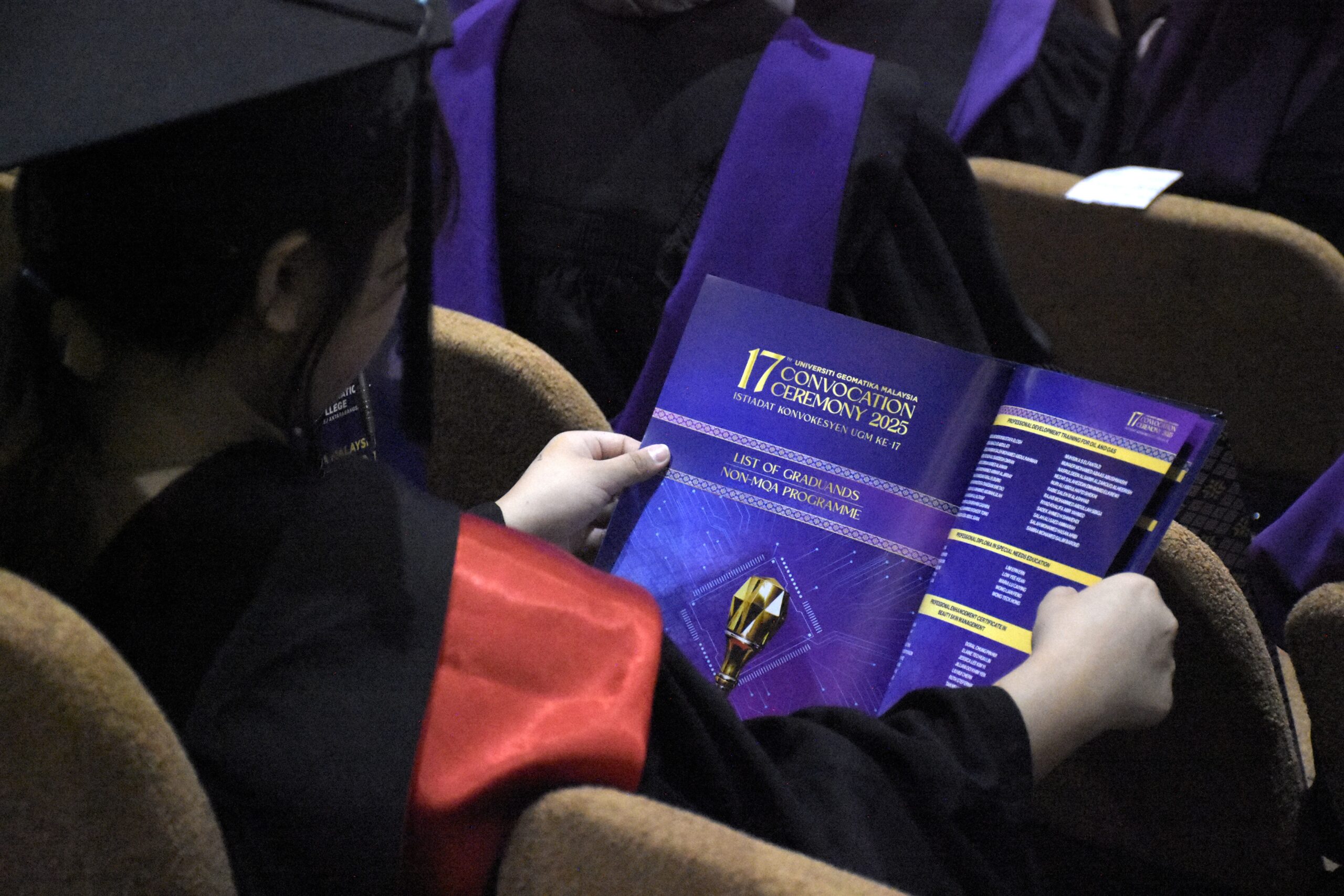 Setinggi-tinggi tahniah dan syabas diucapkan kepada para graduan yang telah diraikan dalam Majlis Konvokesyen Ke-17 Universiti Geomatika Malaysia (UGM) yang telah berlangsung dengan penuh gilang-gemilang pada 19 Jun 2025 bertempat di PWTC, Kuala Lumpur.